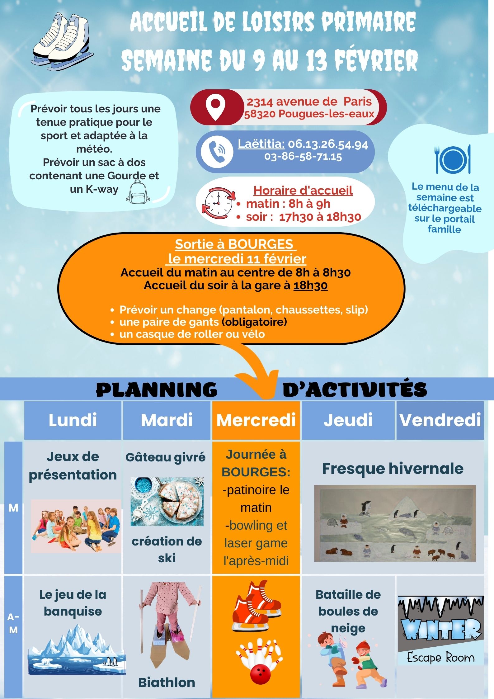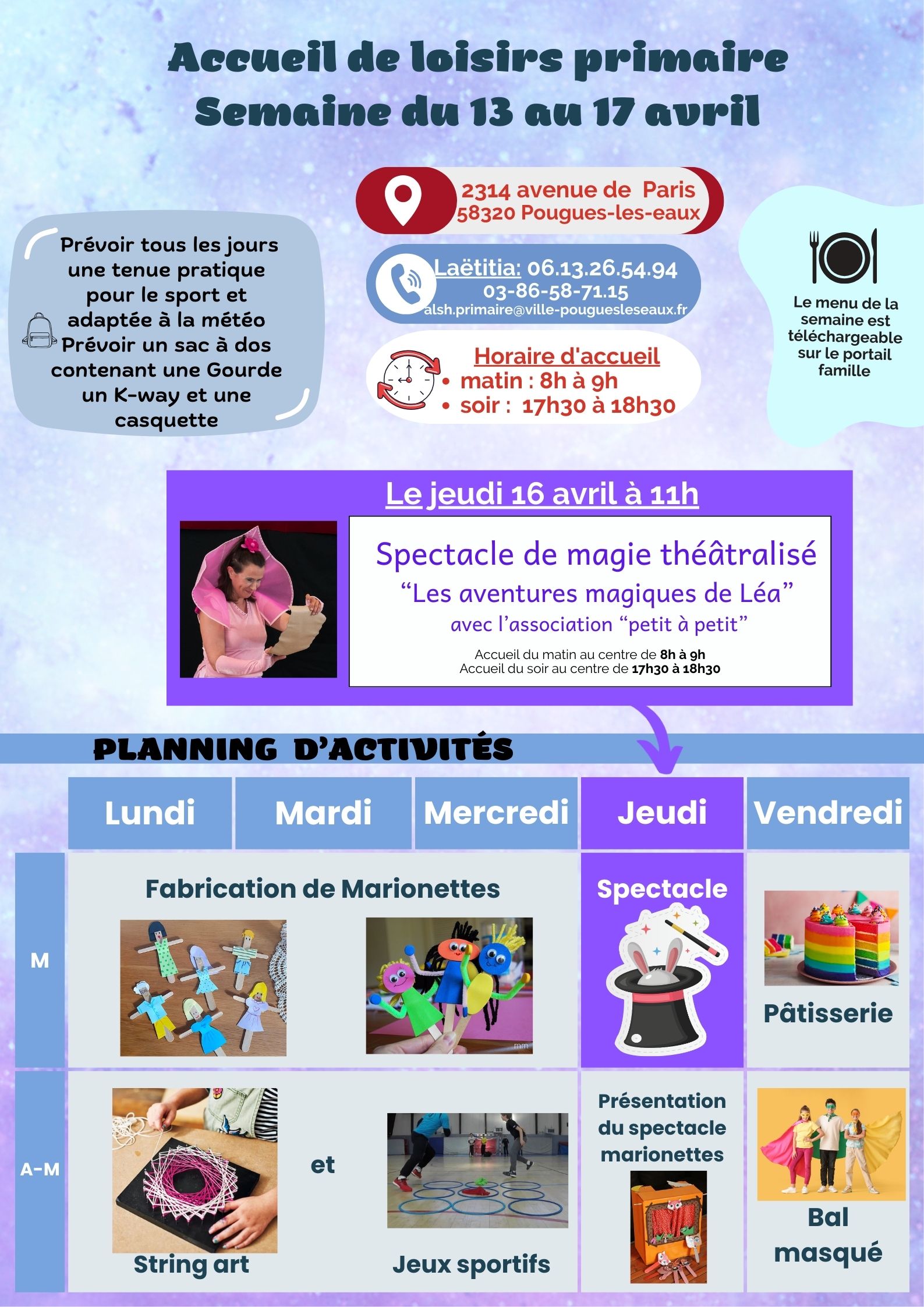 Besoin d'un renseignement ?Muriel FUSEAU MINEL : alsh.coordo@ville-pouguesleseaux.fr ou Laëtitia FRANCOIS : |