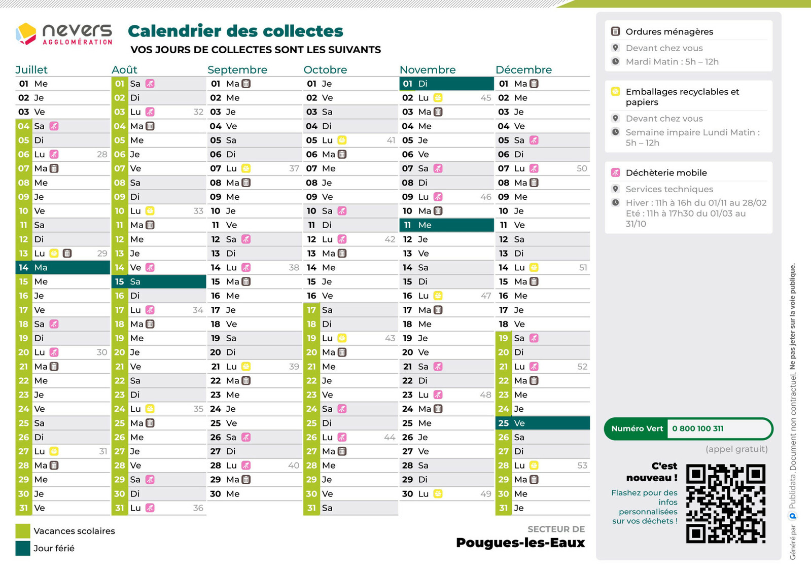 Calendrier des collectes Pougues-les-Eaux 2026