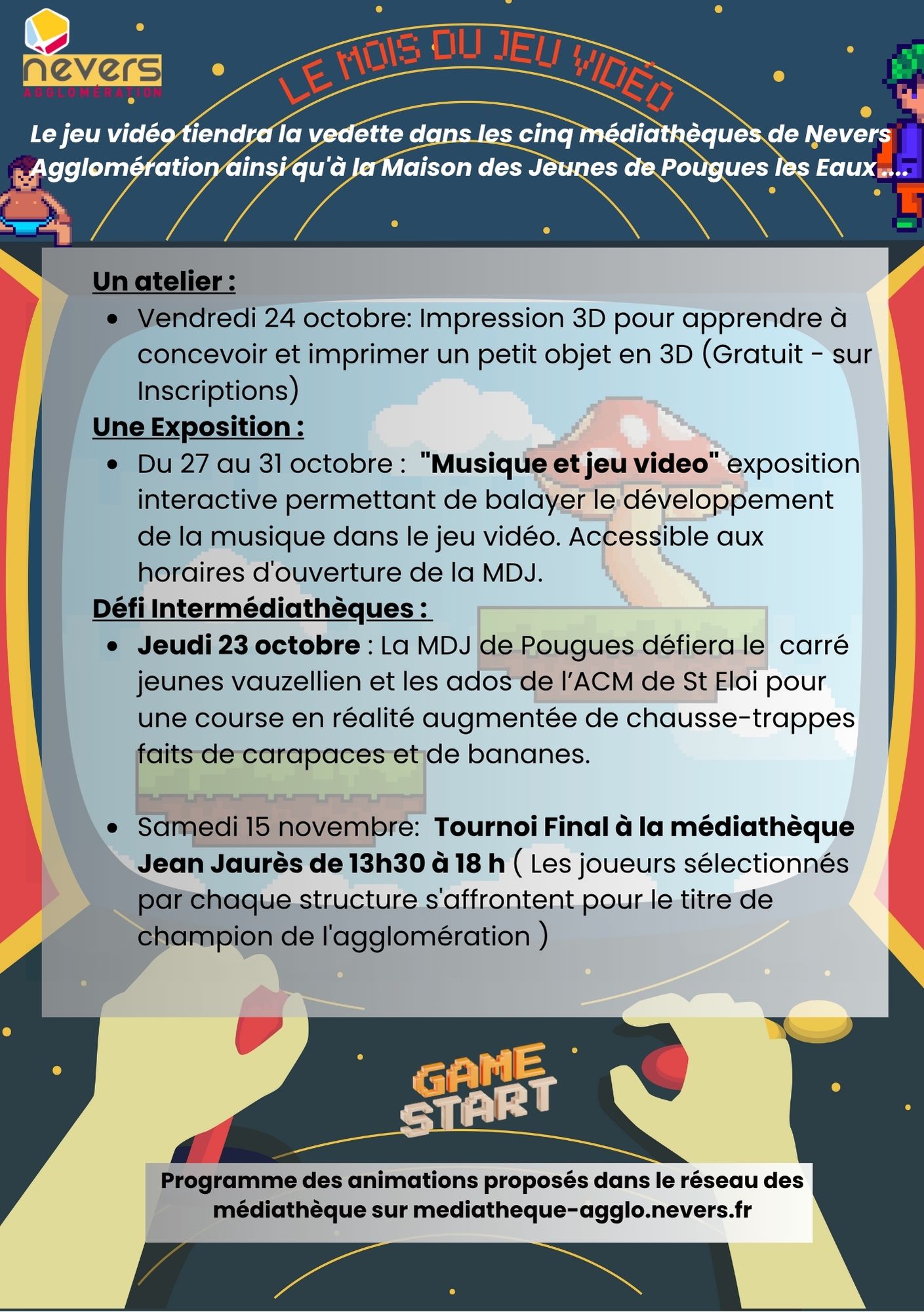 les médiathèques de l'agglomération de Nevers vous proposent une programmation sur le thème du jeu vidéo (compétitions, animations, expositions...).