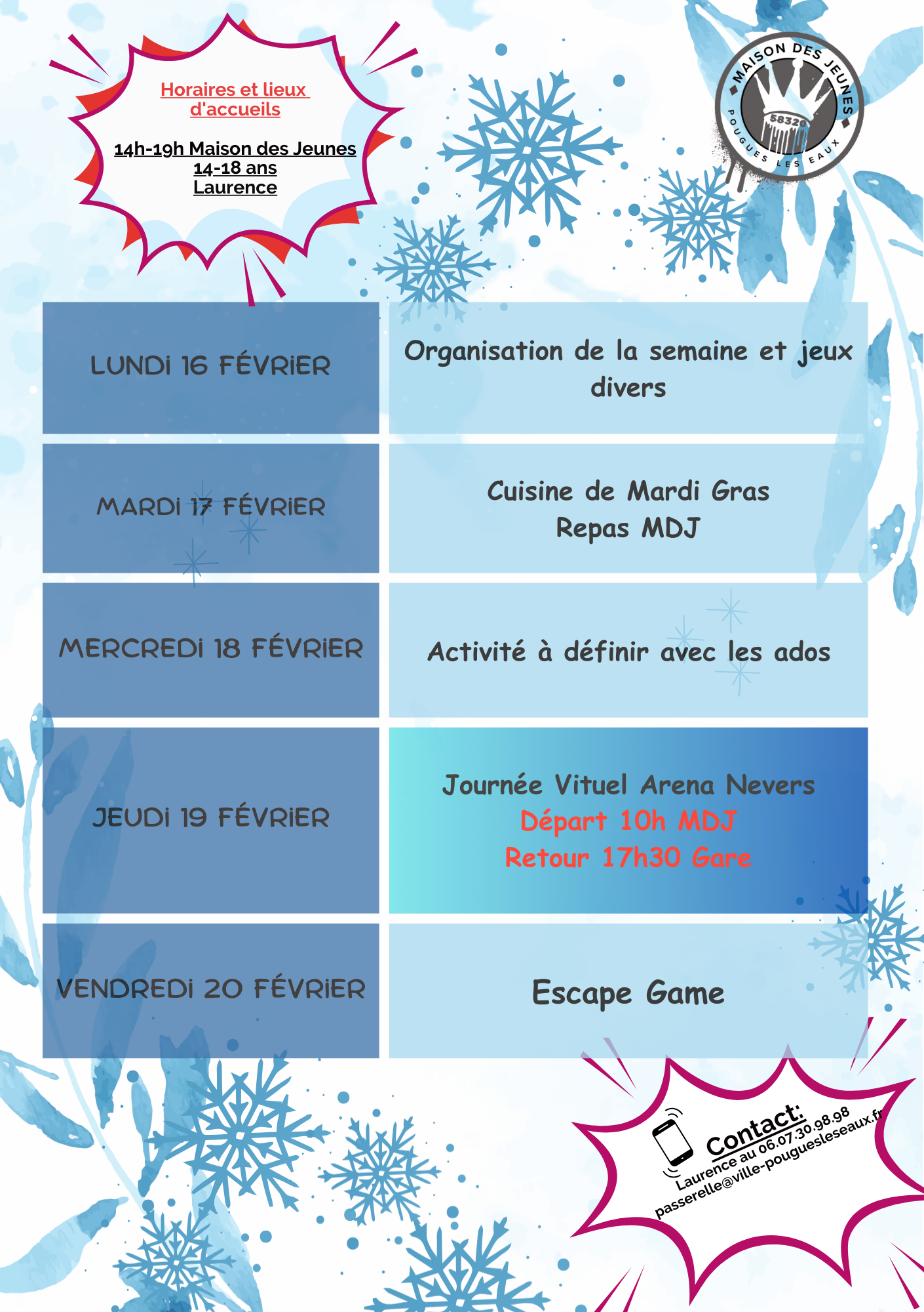 | Nouveauté :Retrouvez ici les programmes des prochaines vacances (3 semaines avant la date de début).